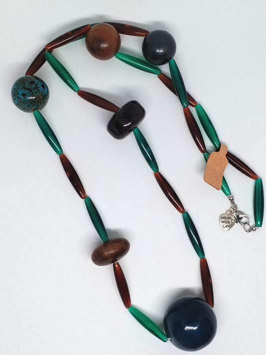 Long turquoise & brown beaded necklace