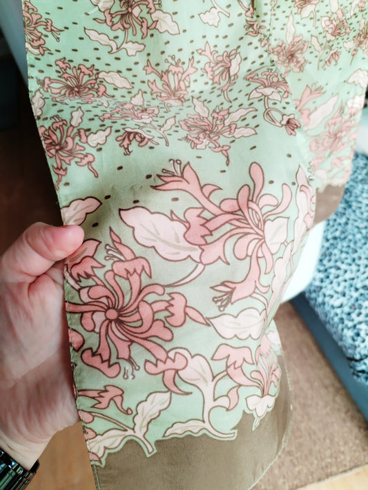 Green & peach floral vintage scarf