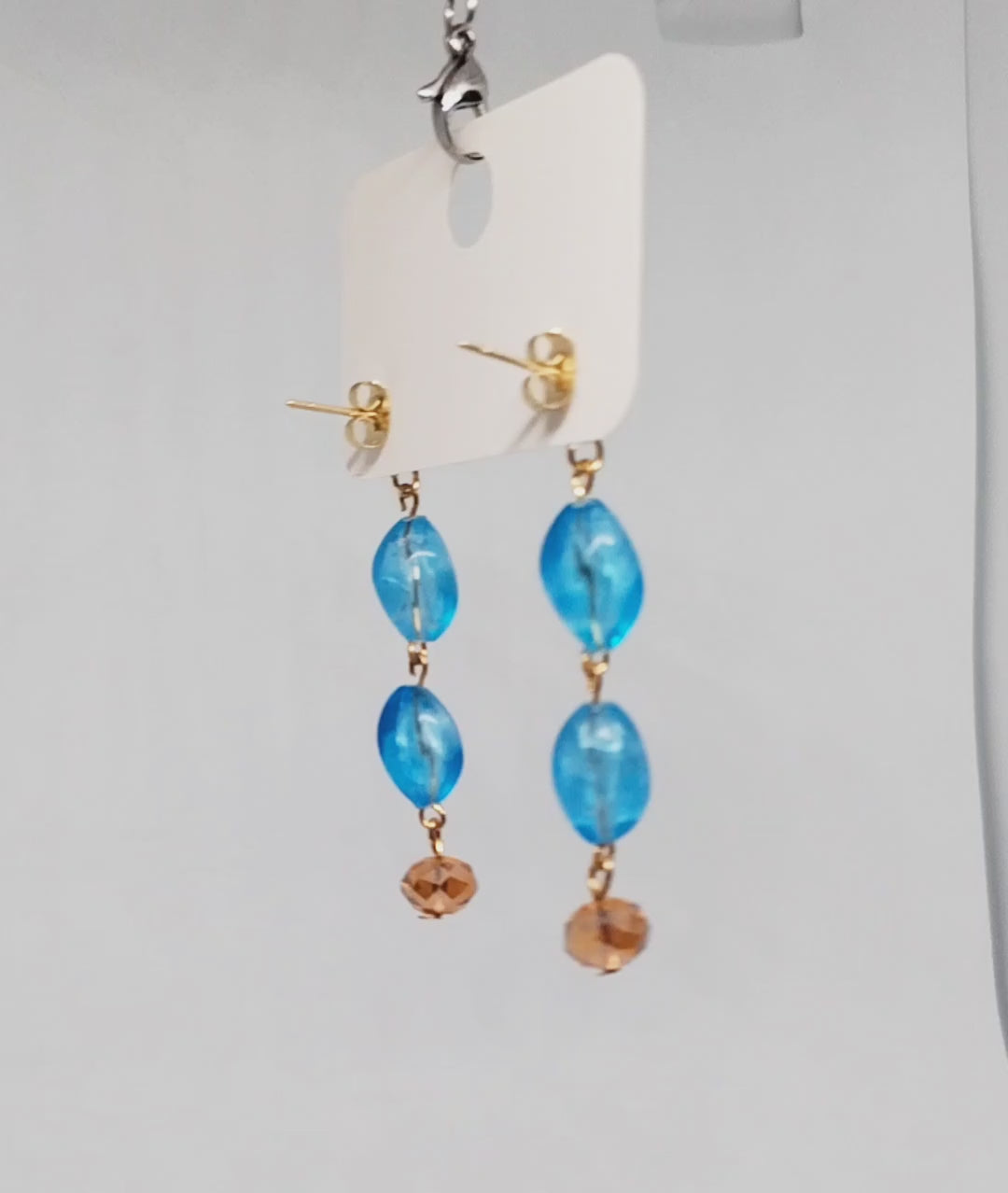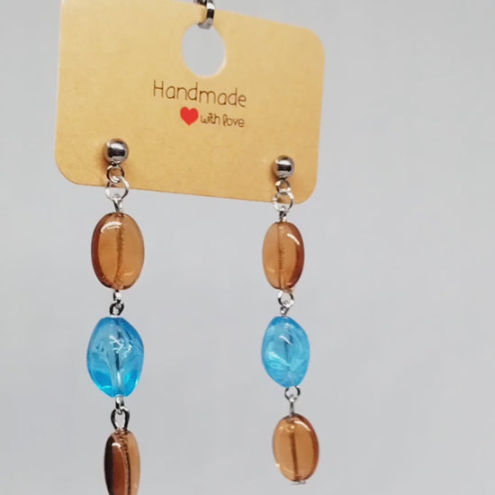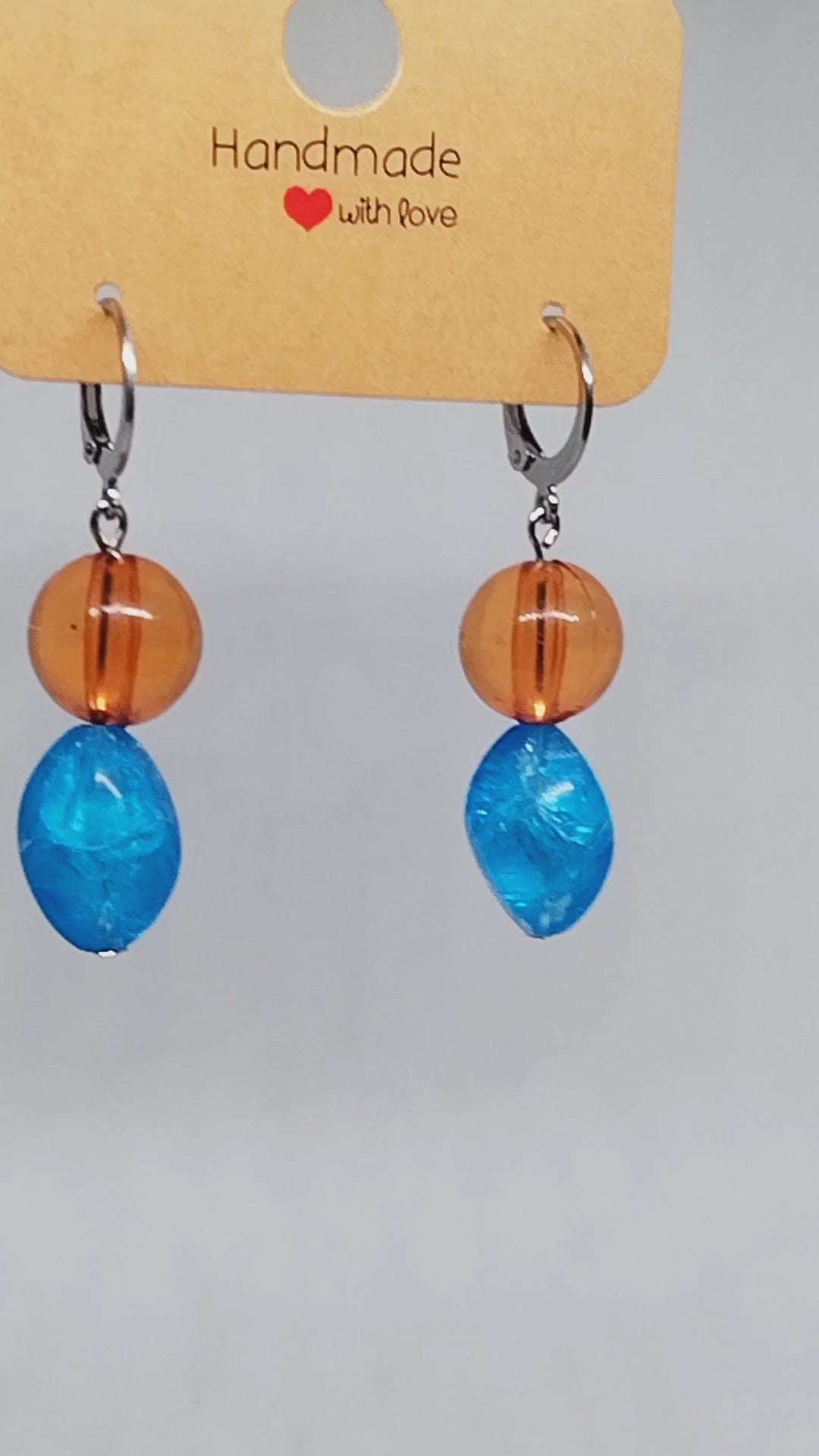 Adore these colours together so designed & handmade earrings using preloved & vintage beads in turquoise, amber & blue. Findings are high quality stainless steel.