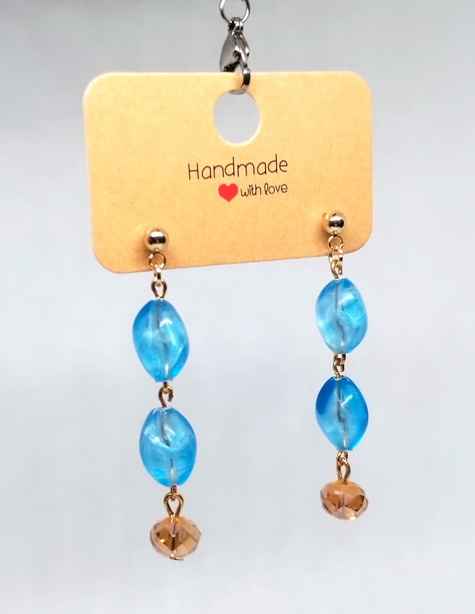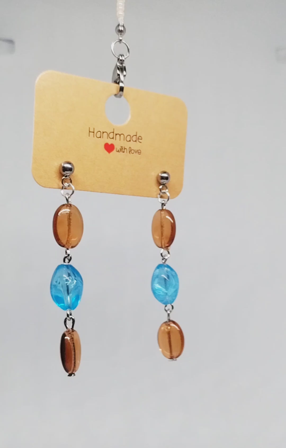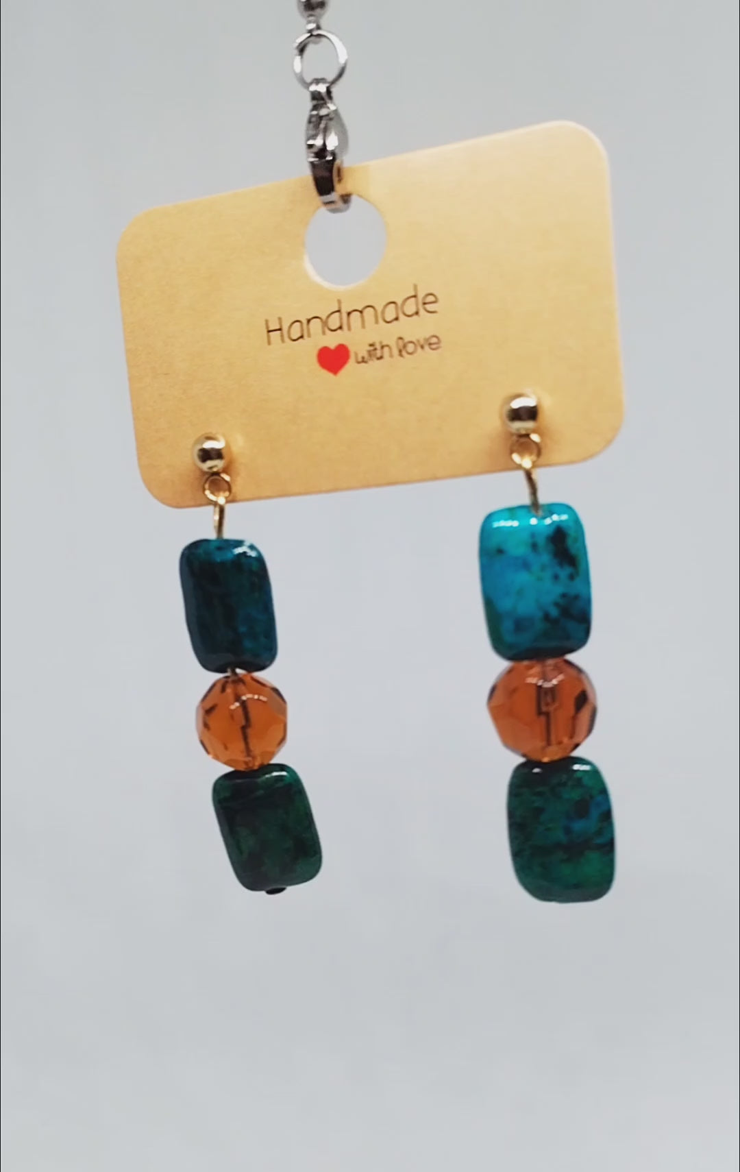 Adore these colours together so designed & handmade earrings using preloved & vintage beads in turquoise, amber & blue. Findings are high quality stainless steel.