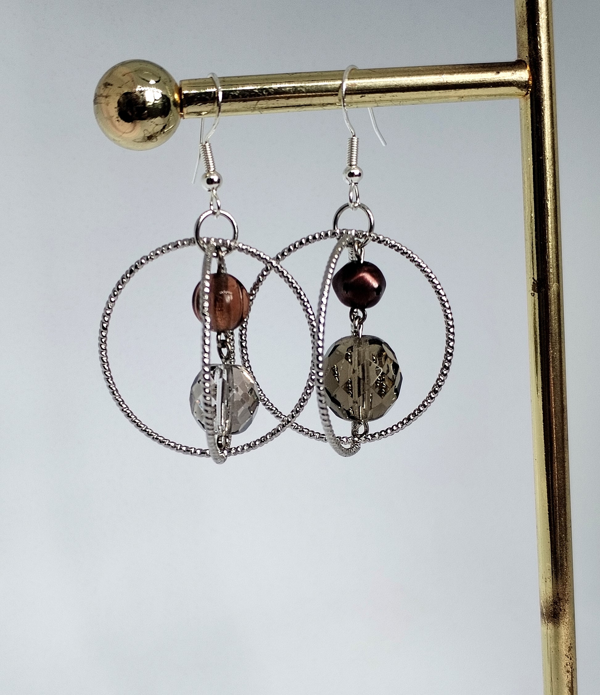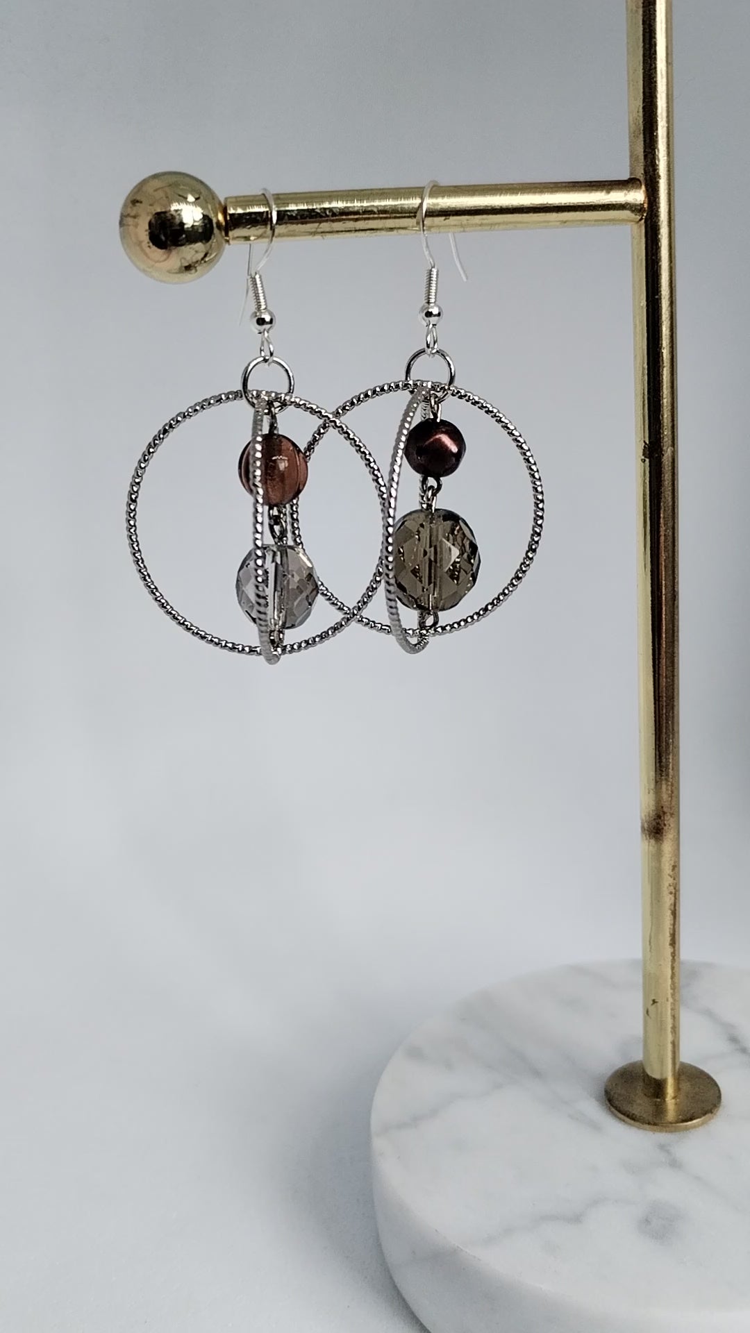 Beautiful reworked earrings made using silver toned circles from a broken vintage necklace with neutral beaded drops from another piece of vintage jewellery. ✨ Completely unique & one of a kind! ✨