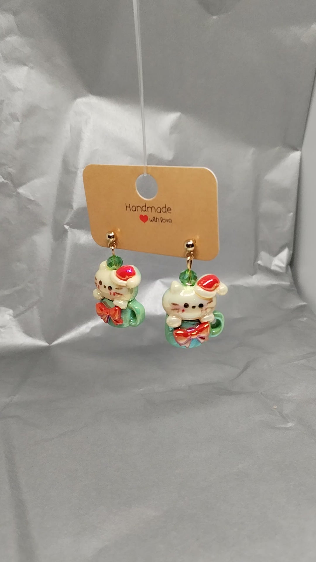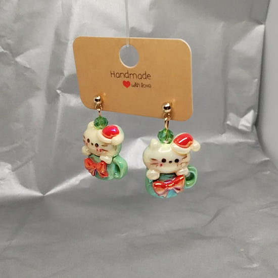 Super cute Christmas cats in stockings earrings on gold stainless steel stud findings. ✨🎄
