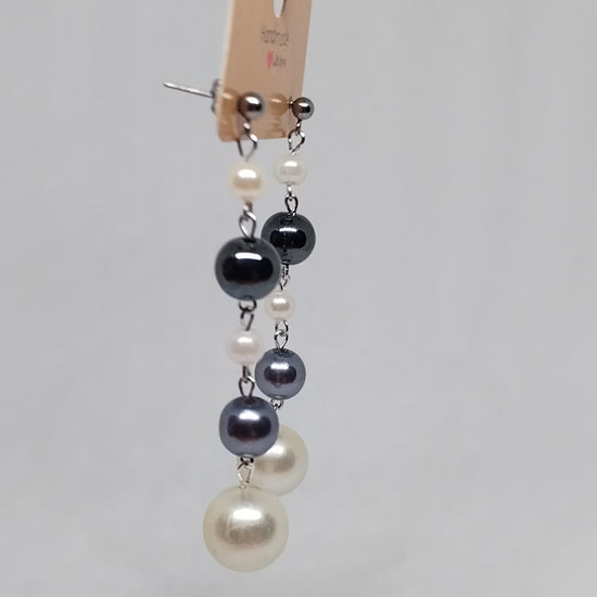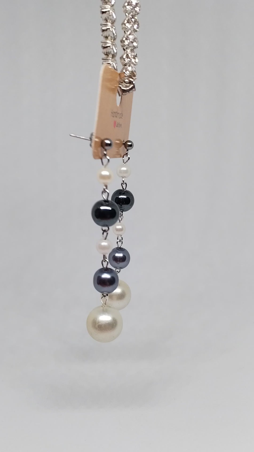 Stunning, classy & sophisticated! 🩶🤍🖤 Handmade earrings made using vintage beads & faux pearls on silver stainless steel studs.