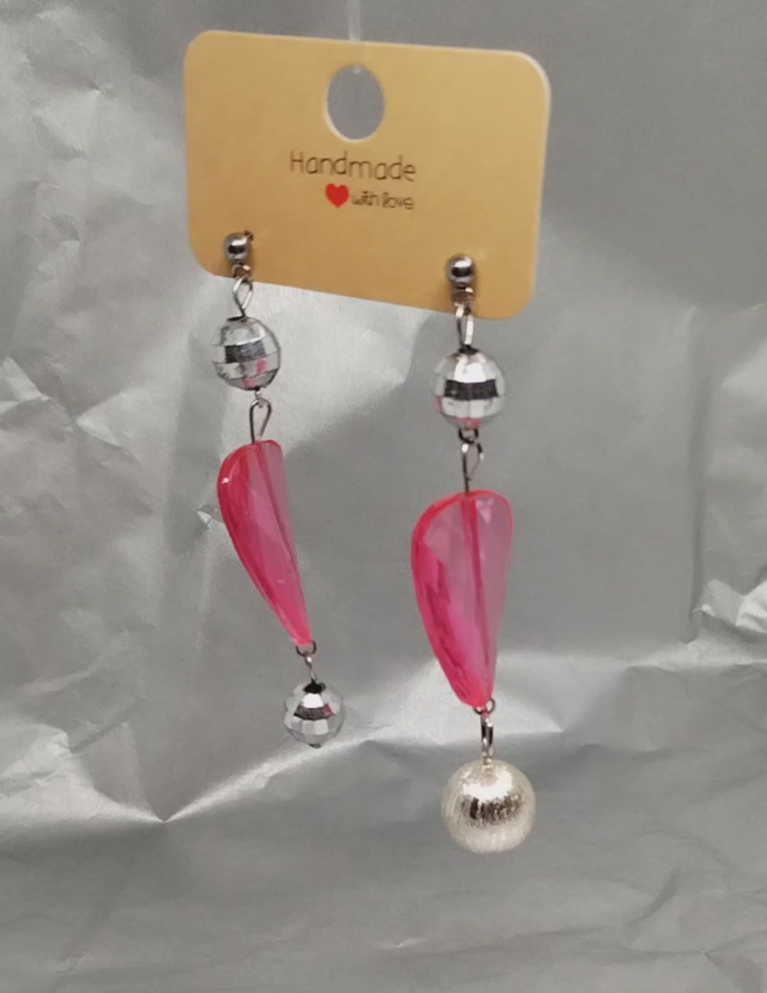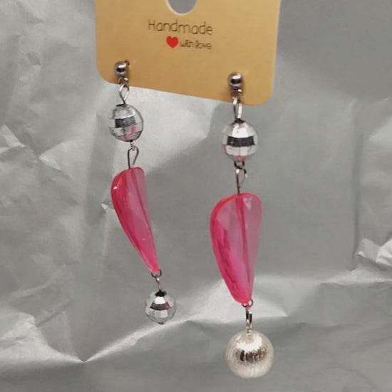 Pink reworked disco earrings