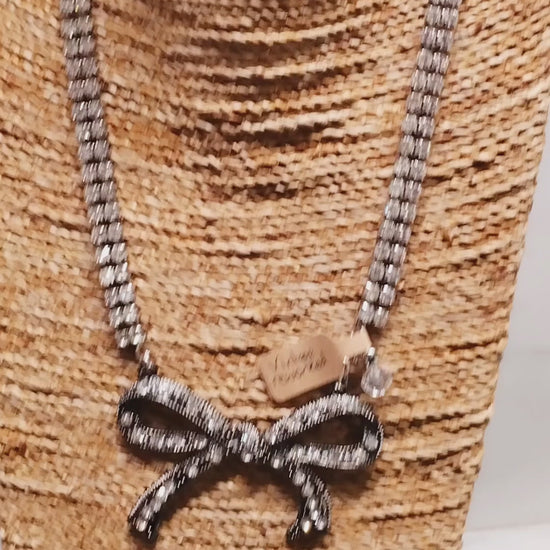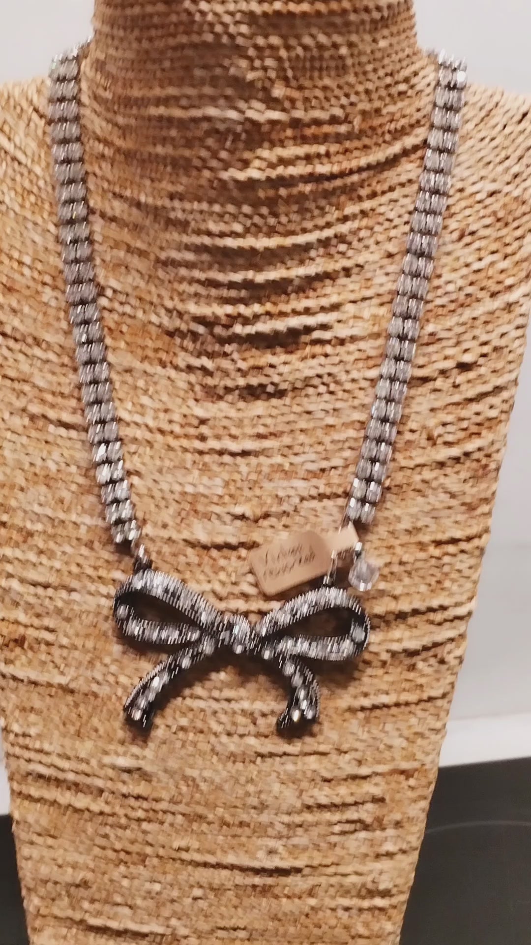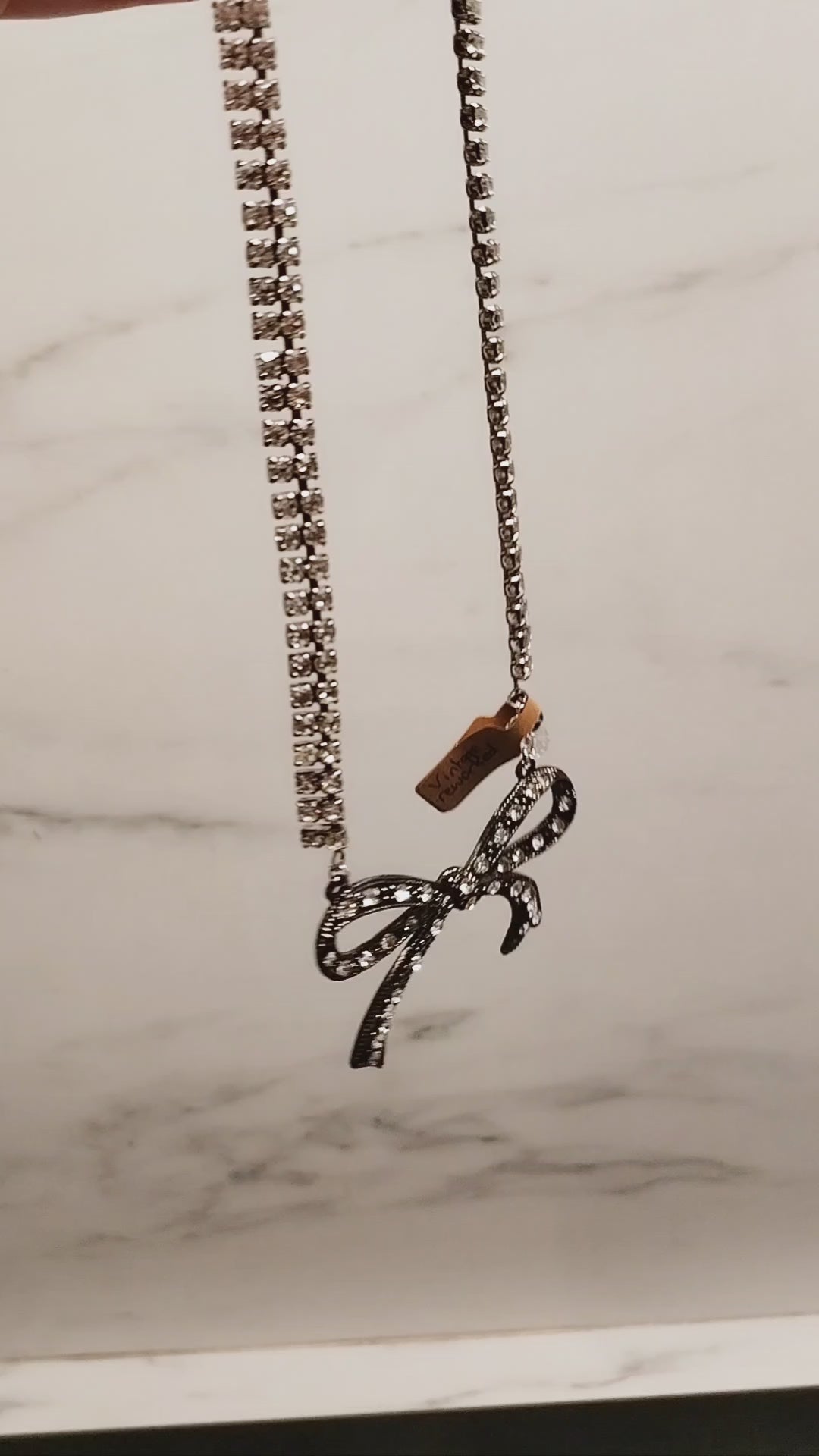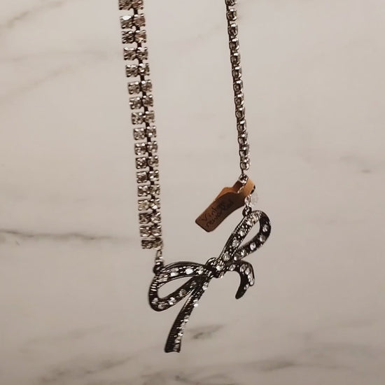 Stunning reworked necklace made using a vintage double layered diamante necklace & a vintage bow pendant with diamantes. The closure is on one side with a little charm & silver stainless steel lobster clasp. Completely unique and one of a kind ✨