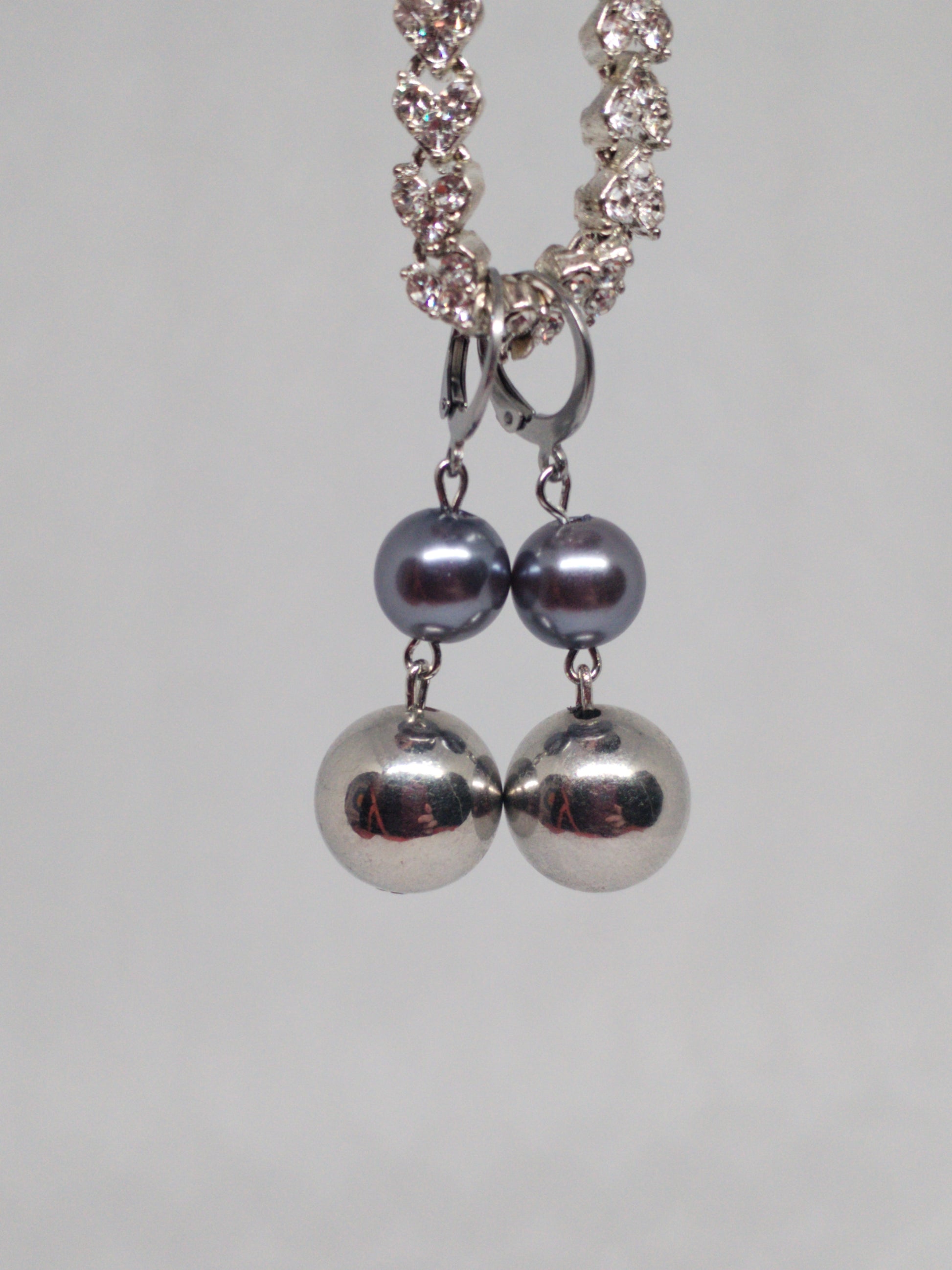 Beautiful handmade earrings made using vintage faux grey pearls & silver beads on silver stainless steel huggies.