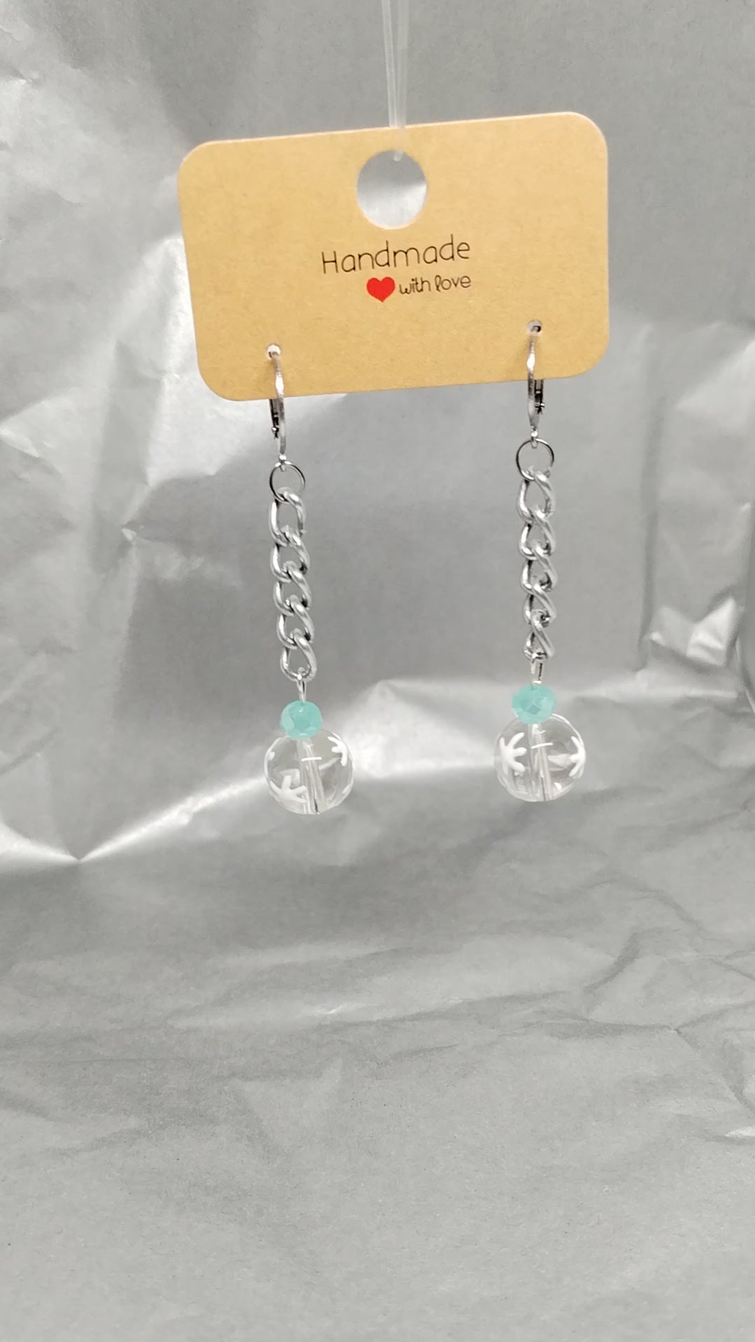 Completely unique handmade earrings made using a preloved silver chain with glass snowflake & faceted beads. The perfect pair if you want to be subtle but a little festive. ❄️